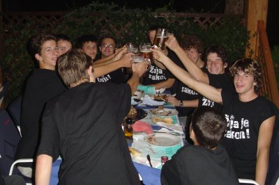 Domagojevi gusari -> foto -> foto 2004 >>> zajedničko druženje 4.VIII. foto: Marko Marušić, Vid, 4.kolovoza 2004.godine večera na post Ledene Gospe u restoranu "Đuđa & Mate" ...